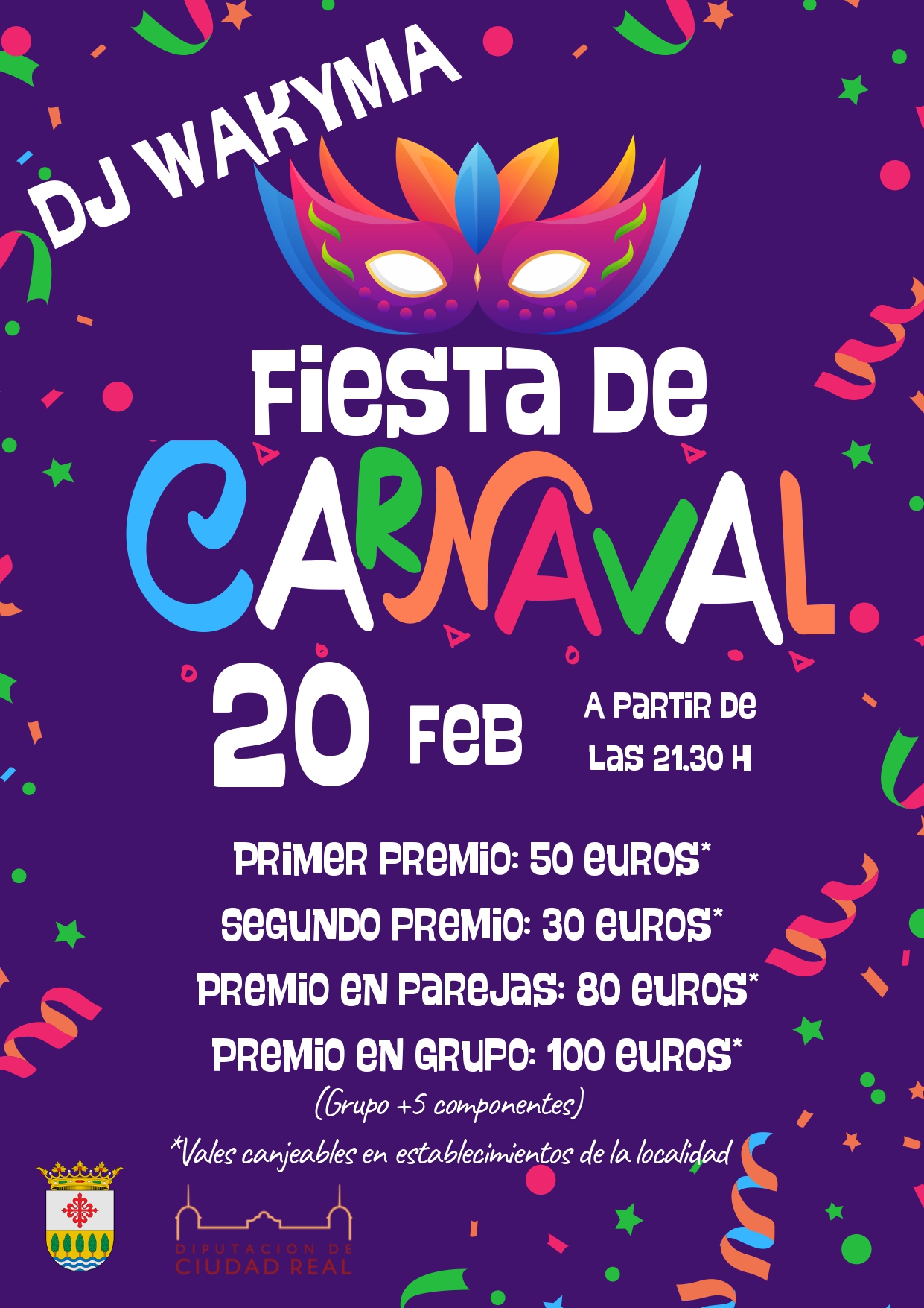 -Categoría Grupo: único premio, un cheque por valor de 100 euros, canjeable en cualquier establecimiento de la localidad. Mínimo 5 componentes.